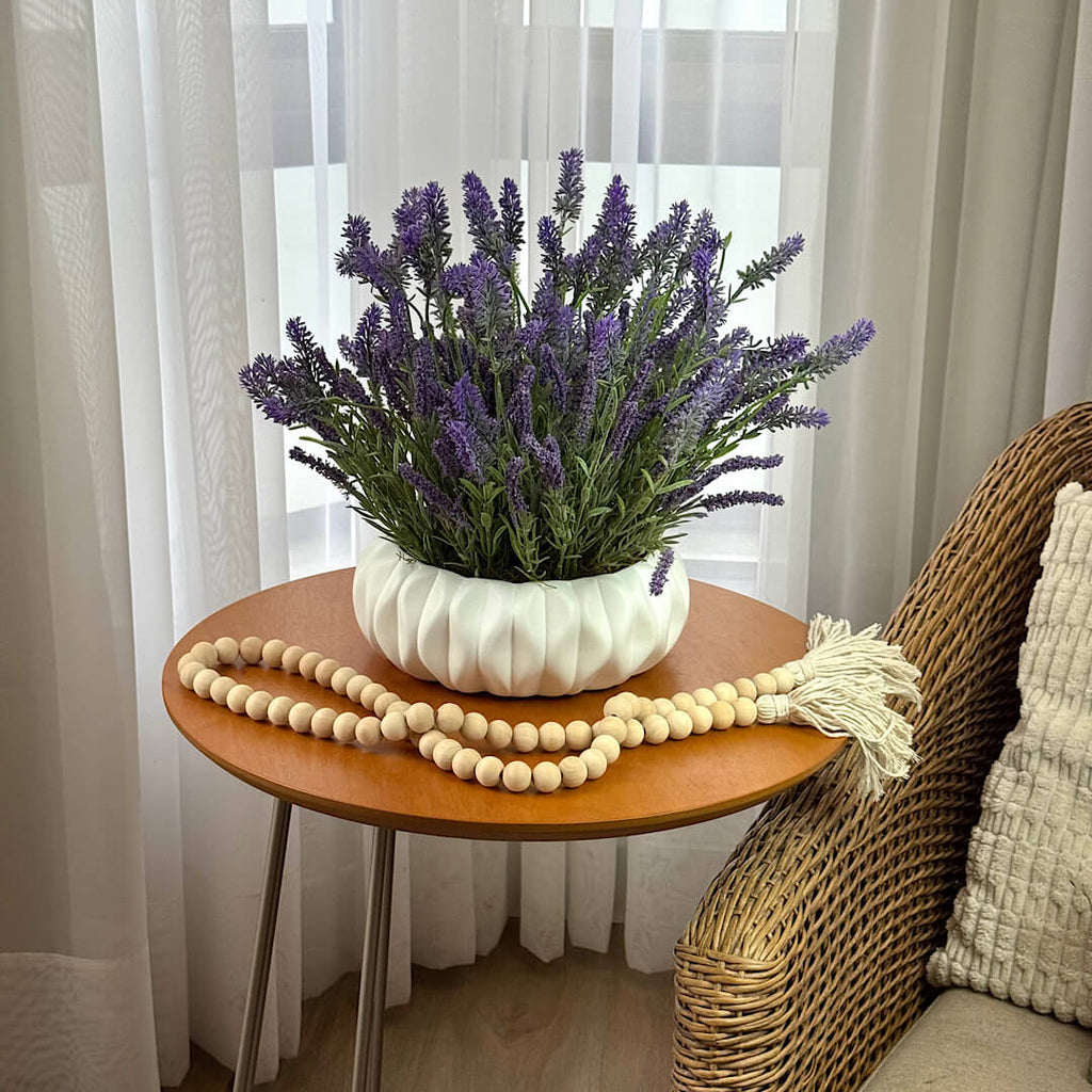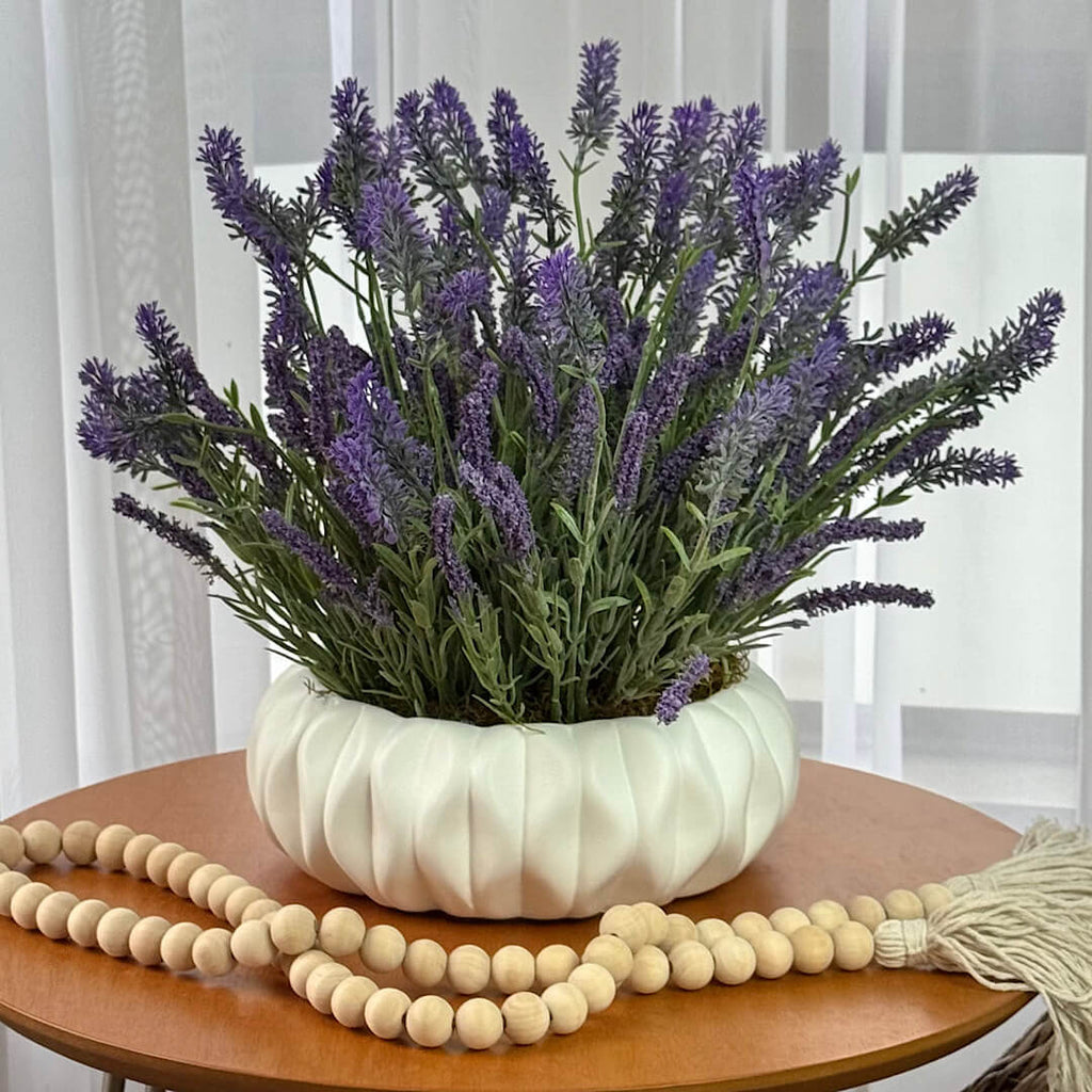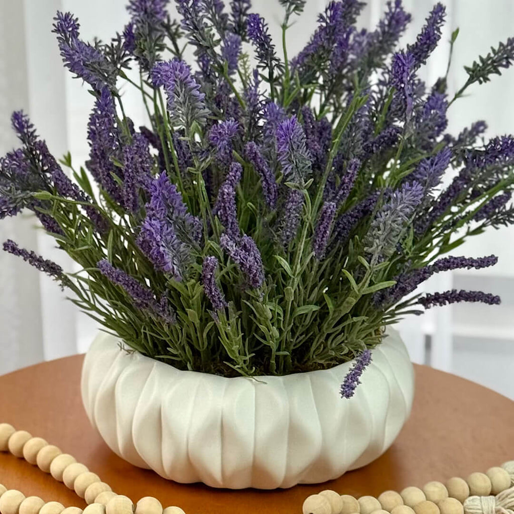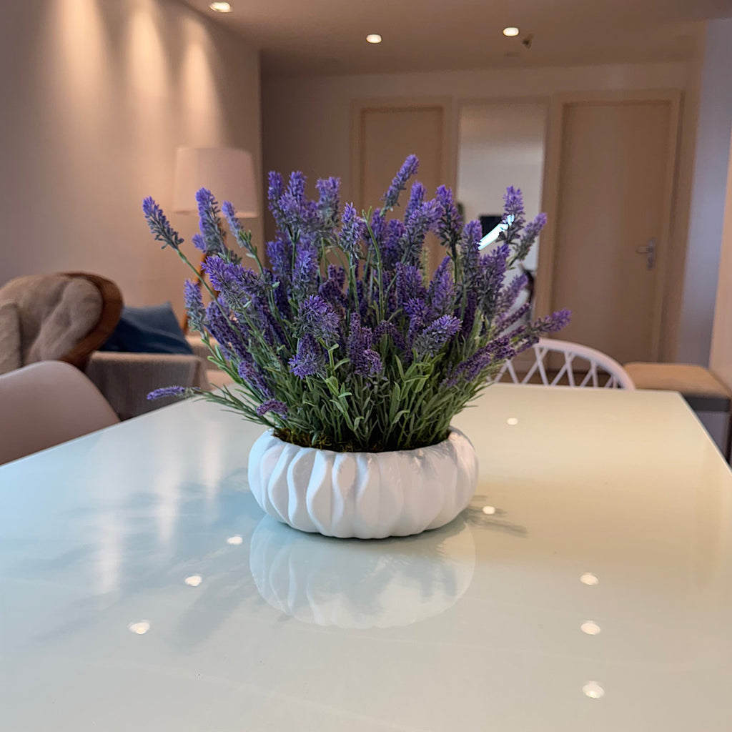 Arranjo pronto (montado) contendo, 1 vaso branco de cerâmica Branco ondulado, e muitos galhos de Lavandas, arranjo bem cheinho mesmo! Pode ser usado como Centro de Mesa de até 8 lugares!