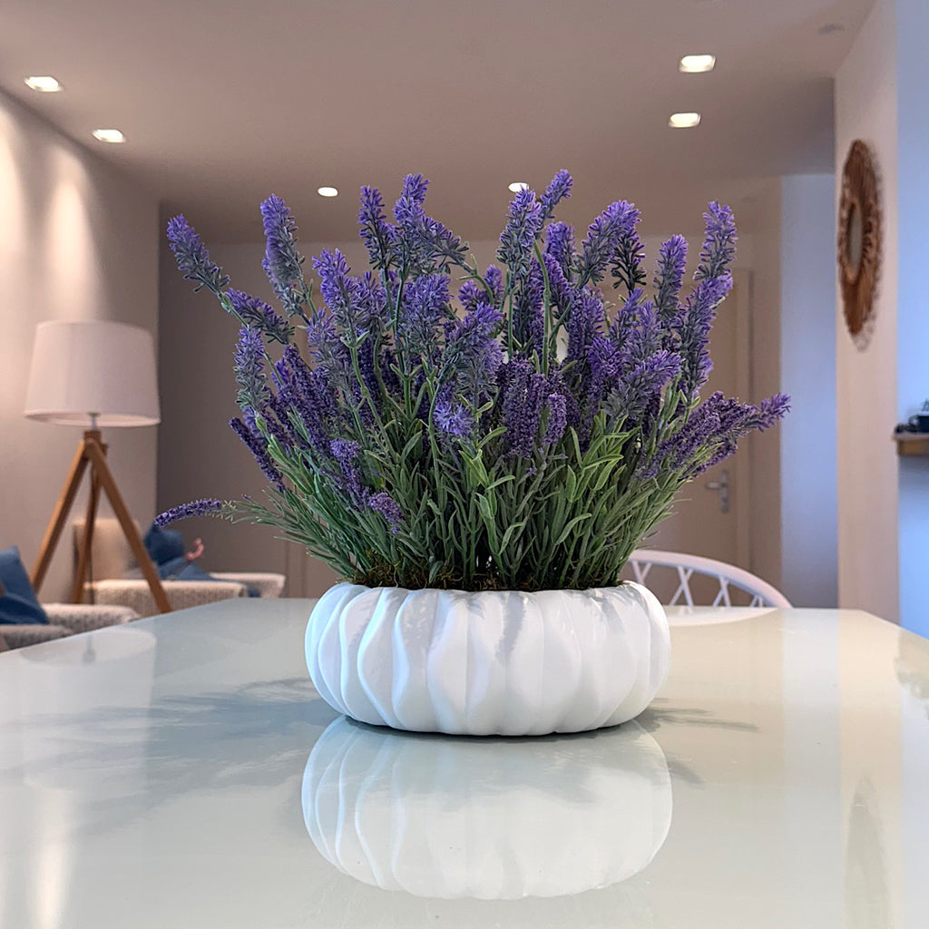 - Altura x Diâmetro do vaso (sem as lavandas): 10cmx 25cm